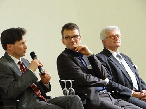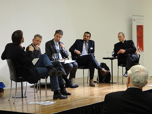 Die den Studientag abschließende Diskussionsrunde wurde von Hanjörg Schmid (Stuttgart) moderiert. Hierin wurde deutlich, wie kontrovers die Ansichten über das heutige Zusammenwirken religiöser und staatlicher Sphären beurteilt wird. Allerdings wurde auch klar, dass die derzeitige Politik keine rigide Trennung von Kirche und Staat forciert.