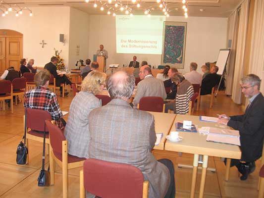 Zweck moderner Stiftungen sei es - darin waren sich Referierende und die Diskutanten während der abschließenden Podiumsdiskussion weitgehend einig - zukunftsfördernde Projekte zu unterstützen, die durch andere gesellschaftliche Institutionen nicht gefördert würden (Meyer-Guckel). So kann die liebende Gabe Gerechtigkeit schaffen und dazu beitragen, dass selbst in Diktaturen Freiheitsräume überleben könnten (Redies). Das moderne Stiftungsrecht der Länder und des Bundes sorge in Deutschland dafür, dass dem Stifterwillen Genüge getan wird (Andrick/Krause). Der These von Michael Borgolte, der Demokratien durch "Mega-Stiftungen" v.a. US-amerikanischen Zuschnitts gefährdet sieht, folgten die Fachleute nicht.